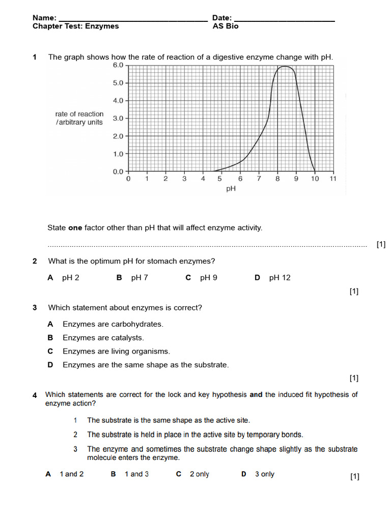 Chapter Test Enzymes PDF Enzyme Digestion Enzymes Test Pdf base your answer on the graph and on your knowledge of biology. Each enzyme is specific to an. For more awesome gcse and a level resources, visit us at www.savemyexams.co.uk/ enzymes. Enzymes are composed of _________________ monomers/building blocks. Enzymes are important proteins that control chemical reactions in all living organisms. an enzyme in potato cells causes oxygen to. Enzymes Test Pdf.